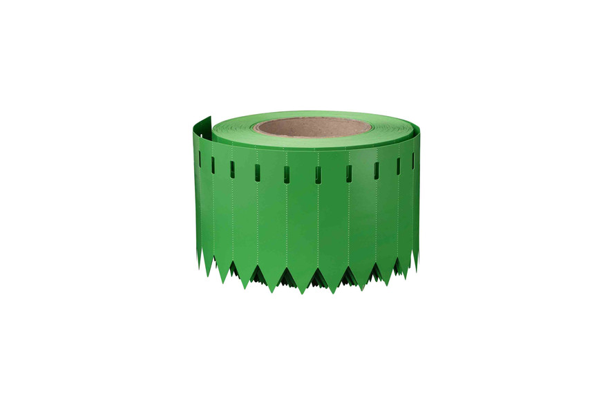 étiquette transfert thermique à piquer pvc l.20mm L.100mm vert épaisseur 0.35mm 1 de front bobine 140mm mandrin 76mm